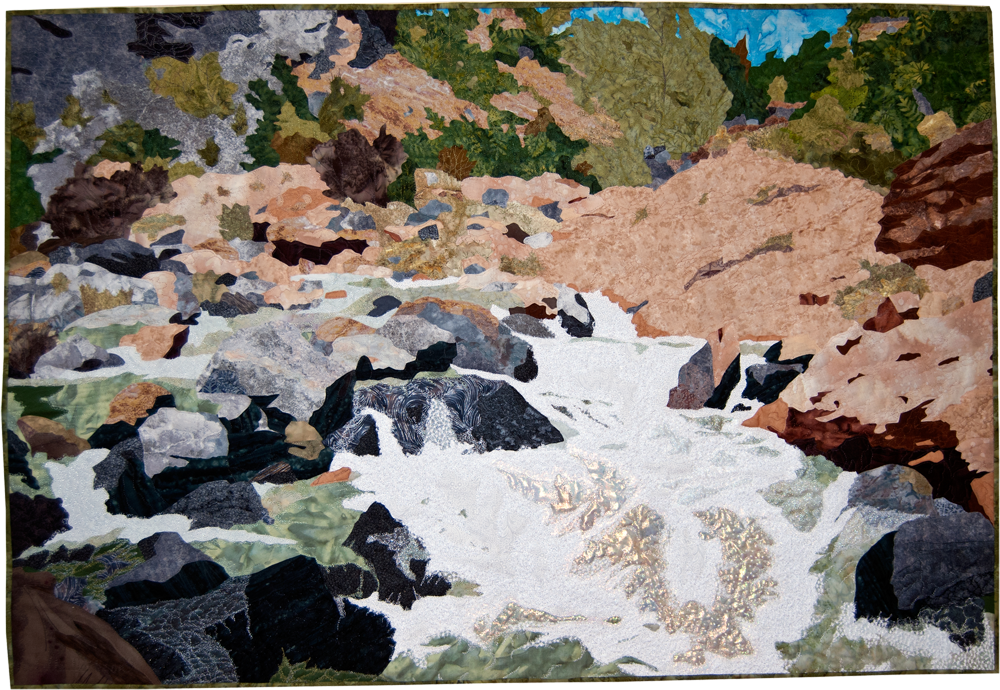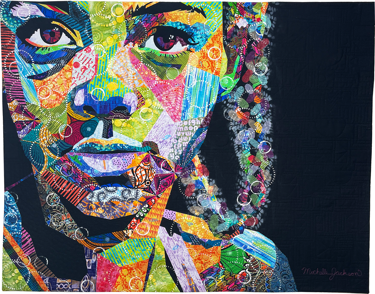 In addition to her landscape work, Michelle specializes in fiber portraiture. She teaches this challenging medium nationally. She says portraiture is probably the hardest thing to teach and to learn. First there are high expectations and generally low confidence. Portraiture requires a high level of observation and adherence to detail as faces are so distinctive. She enjoys the challenge and rejoices in the successes of her students.