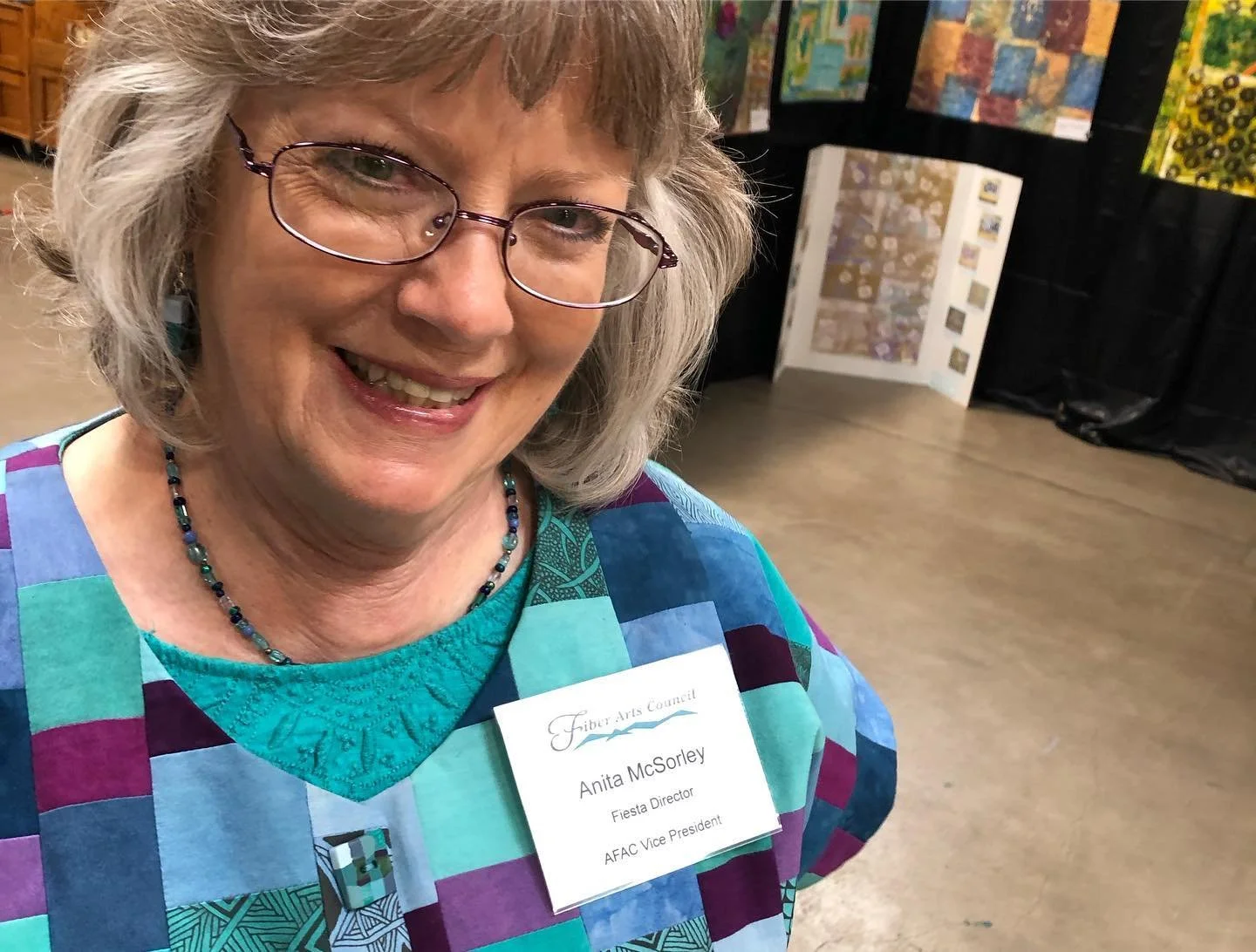 Anita truly “belonged” to each of the many groups she chose for belonging. Those guilds included the Albuquerque Modern Quilt Guild, New Mexico Quilters Association, Thimbleweeds, Studio Art Quilt Associates, New Mexico Polymer Clay Guild, Las Aranas Spinning abd Weaving Guild, Sewing Guild, Mixed Media Textile Artists of New Mexico, Bead Society of New Mexico and others that sparked her creativity. Additionally Anita encouraged and insprited others to joing her love of fiber by teaching at local quilt stores, and welcoming other artists to her cabin in the Jemez mountains for artistic retreats (involving birds, squirrels, M&M’s and wine). Her works in fiber art won awards at local and national levels and have been published in books magazines, along with her original patterns and designs.